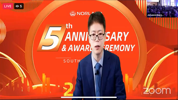 Norland South Africa branch's fifth Anniversary Celebration and Award Ceremony, which included online and offline aspects, was held successfully on June 18, 2022. From various locations, more than 3,500 members and guests from South Africa, Botswana, Namibia, Lesotho, Zimbabwe, Zambia, Tanzania, and other countries came to witness and celebrate Norland Southern Africa's fifth anniversary.